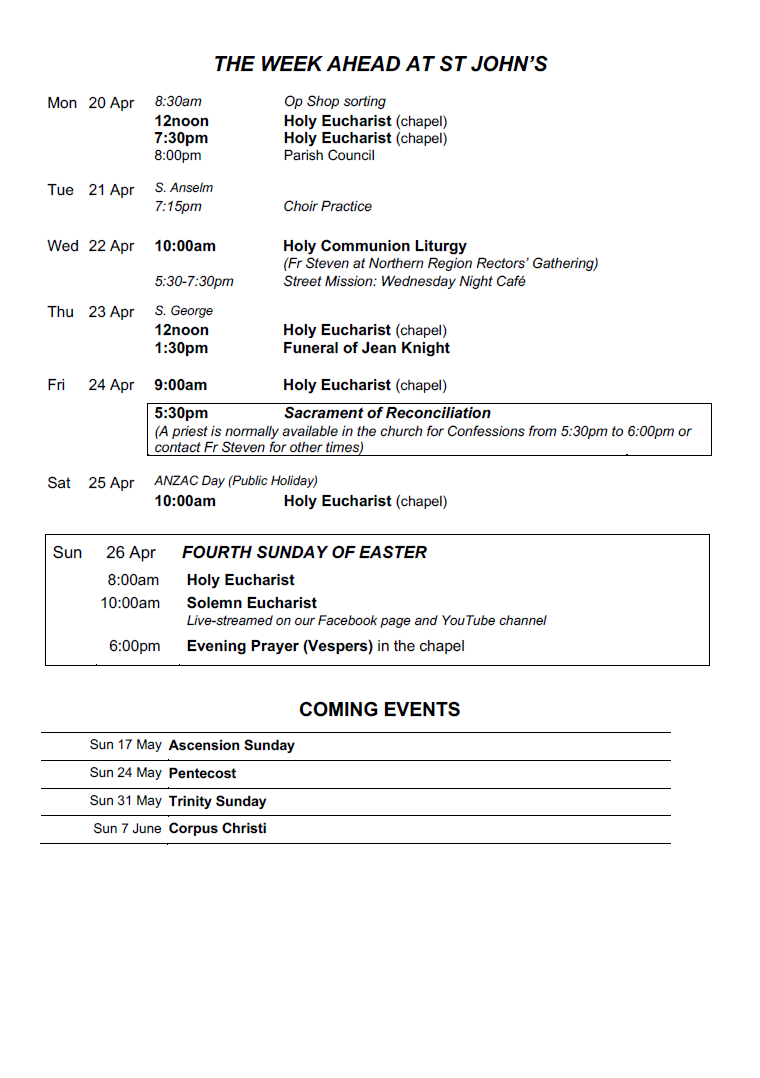 St John’s Anglican Church acknowledges the traditional custodians of this land and pays respect to all Aboriginal people, and to their families past and present.